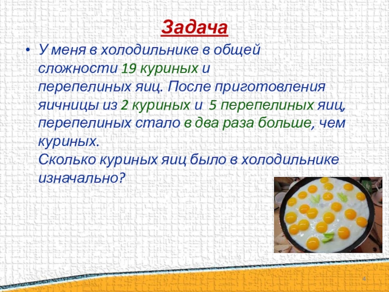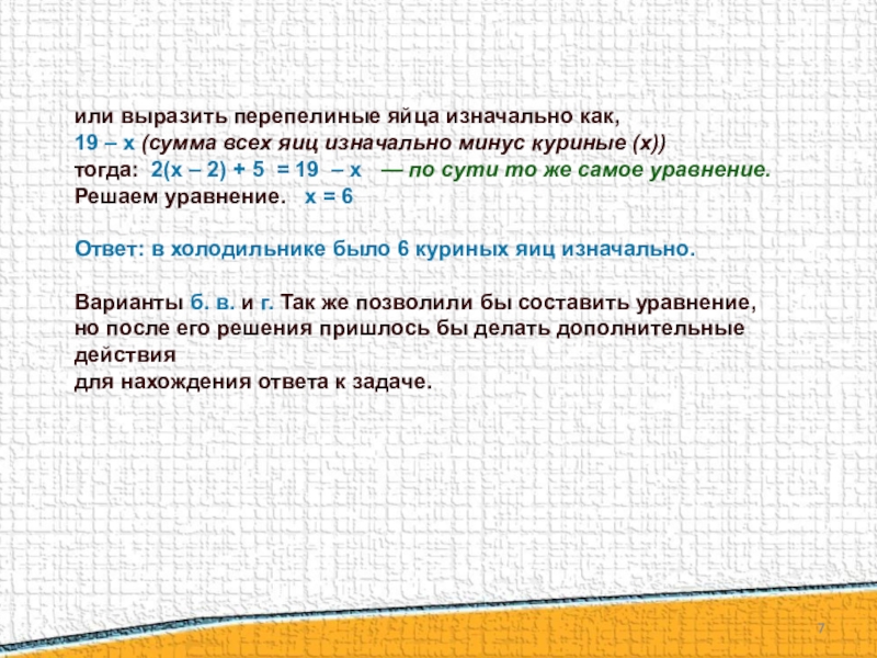 x + 2(x – 2) + 5 — сумма яиц изначально