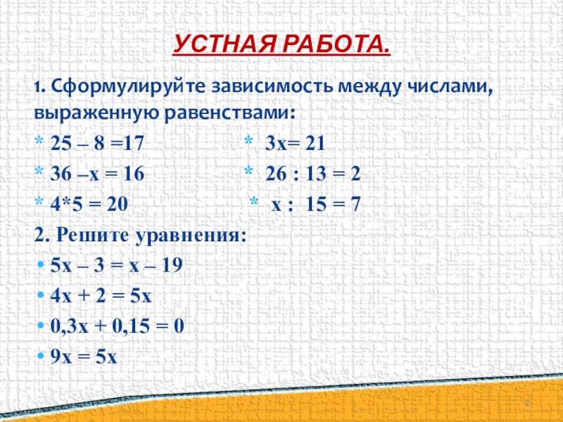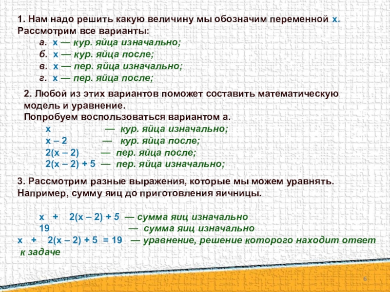 2. Любой из этих вариантов поможет составить математическую модель и уравнение.