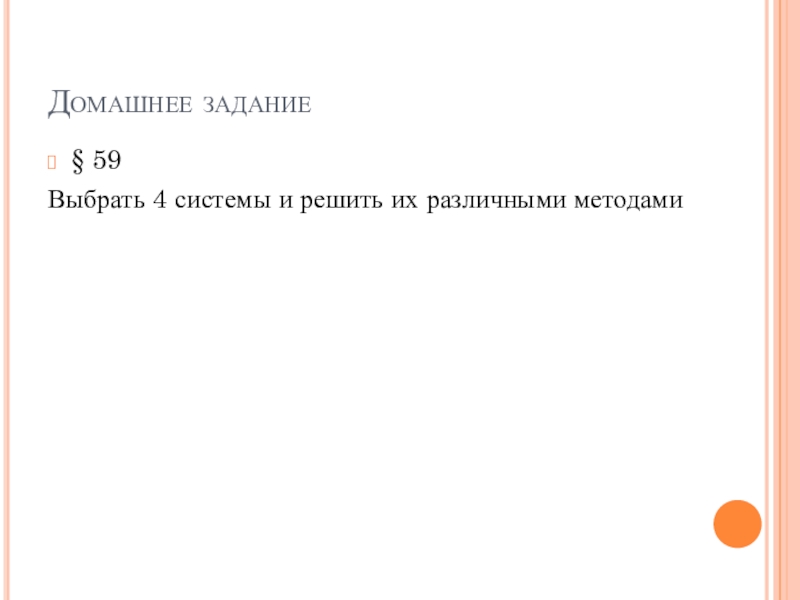 Домашнее задание § 59Выбрать 4 системы и решить их различными методами