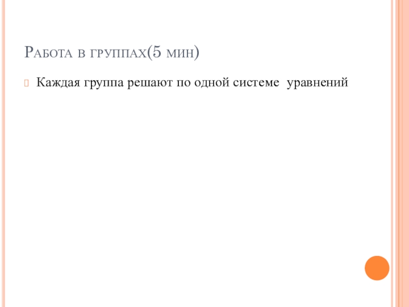 Работа в группах(5 мин)Каждая группа решают по одной системе уравнений