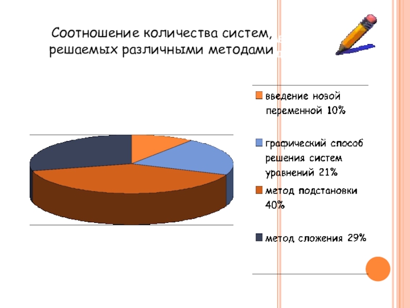 Слайд 23Соотношение количества систем, решаемых методом введения новых переменных, с другими методами.