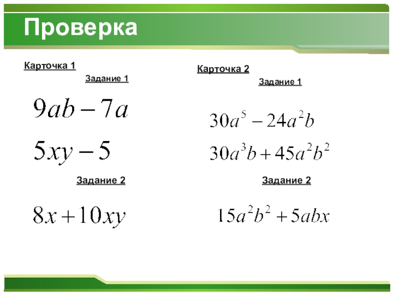 ПроверкаКарточка 1Задание 1Задание 2Карточка 2Задание 1Задание 2