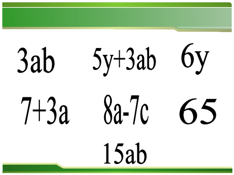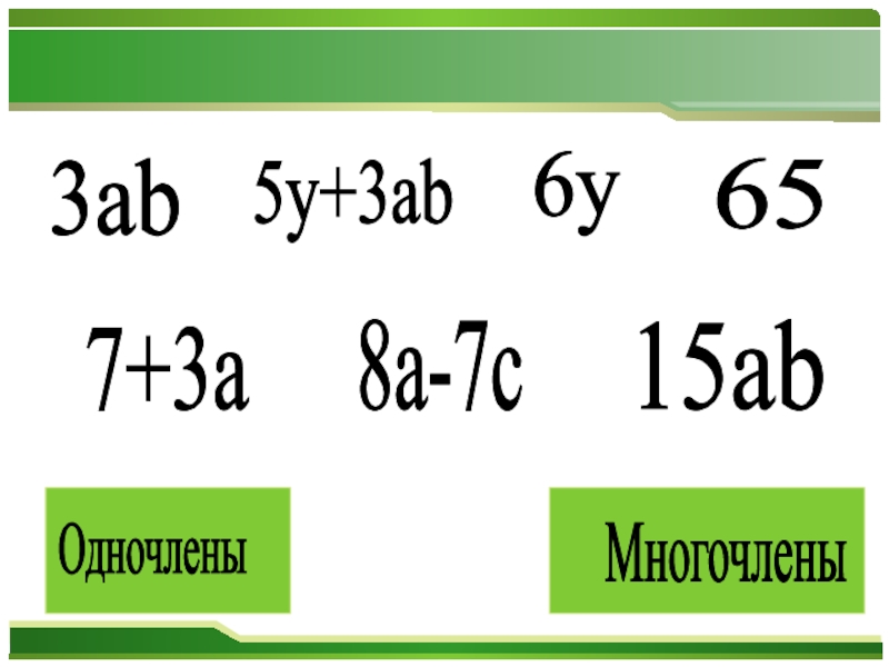 3ab6y5y+3ab8a-7c15ab7+3a65ОдночленыМногочлены