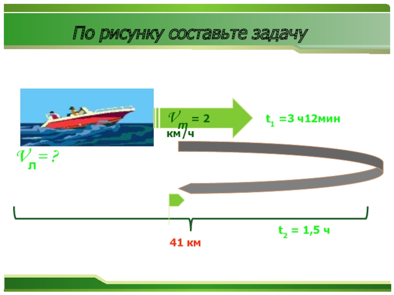 t1 =3 ч12минt2 = 1,5 ч41 кмVл= ?По рисунку составьте задачу