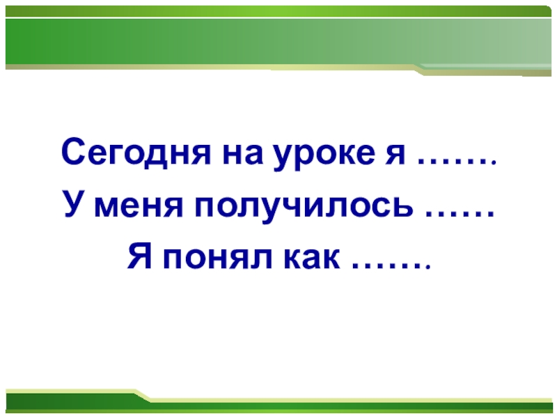 Сегодня на уроке я …….У меня получилось ……Я понял как …….