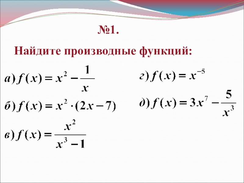 №1.Найдите производные функций: