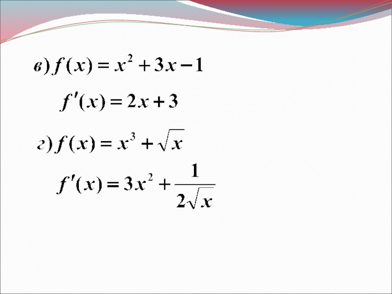 ТАБЛИЦА ПРОИЗВОДНЫХПРАВИЛА ВЫЧИСЛЕНИЯПРОИЗВОДНЫХ