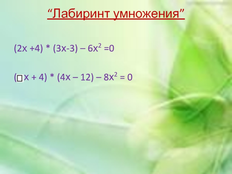 “Лабиринт умножения” (2х +4) * (3х-3) – 6х2 =0(  х + 4) * (4х – 12)
