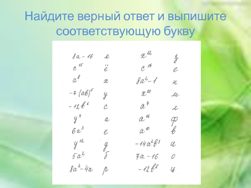 Слайд 3Найдите верный ответ и выпишите соответствующую букву