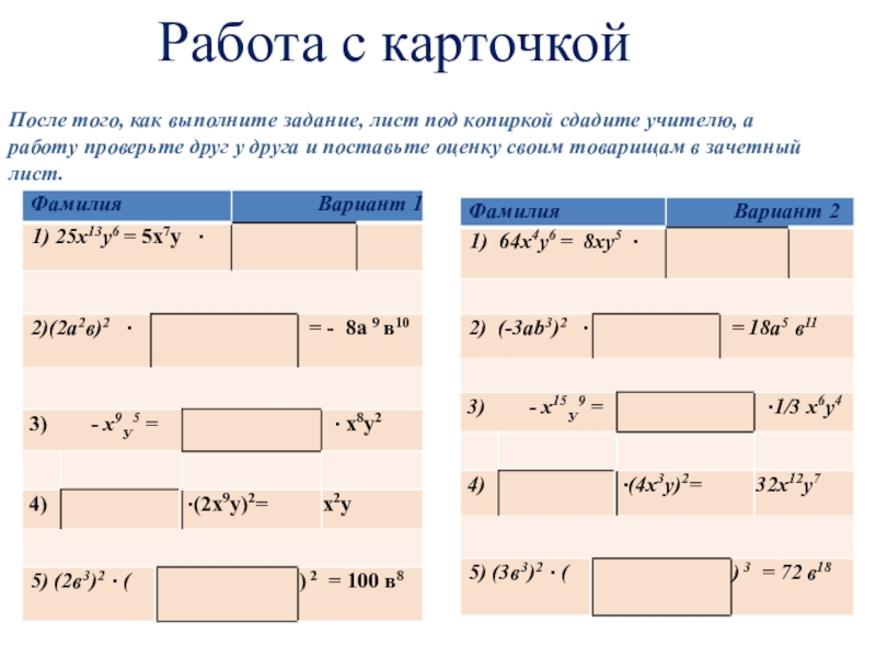 Оцените ответы товарища и поставьте оценку в зачетный лист.