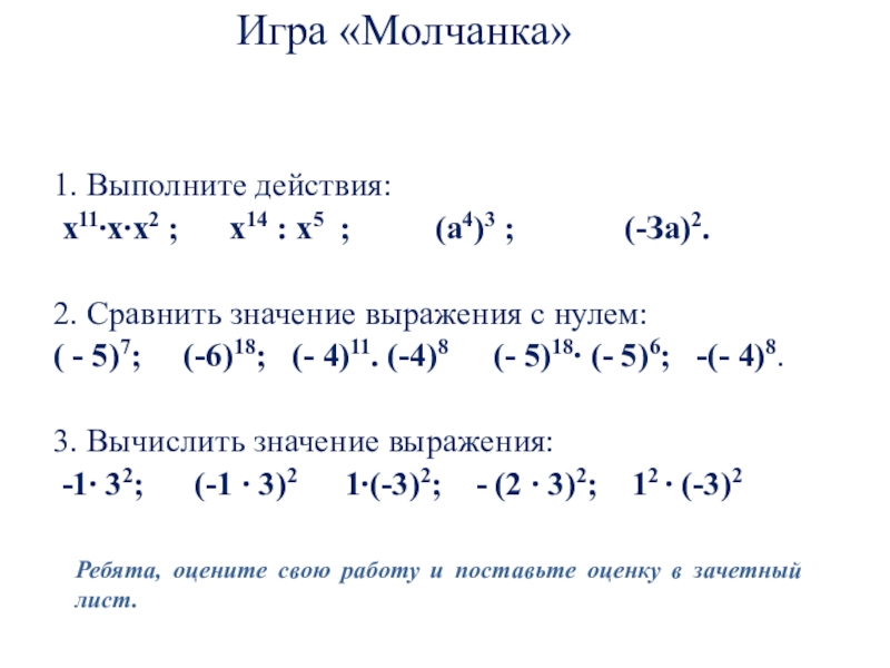 Ребята, оцените свою работу и поставьте оценку в зачетный лист.