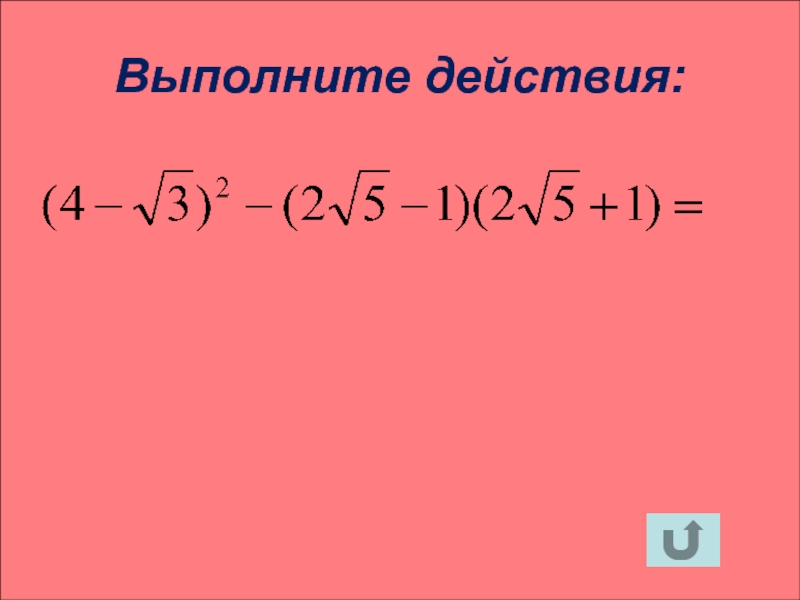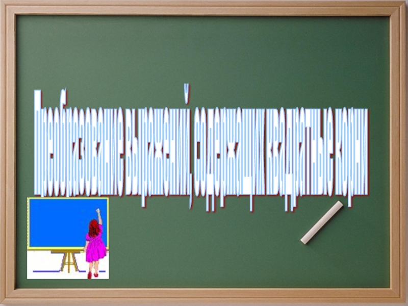 Слайд 1Преобразование выражений, содержащих квадратные корни
