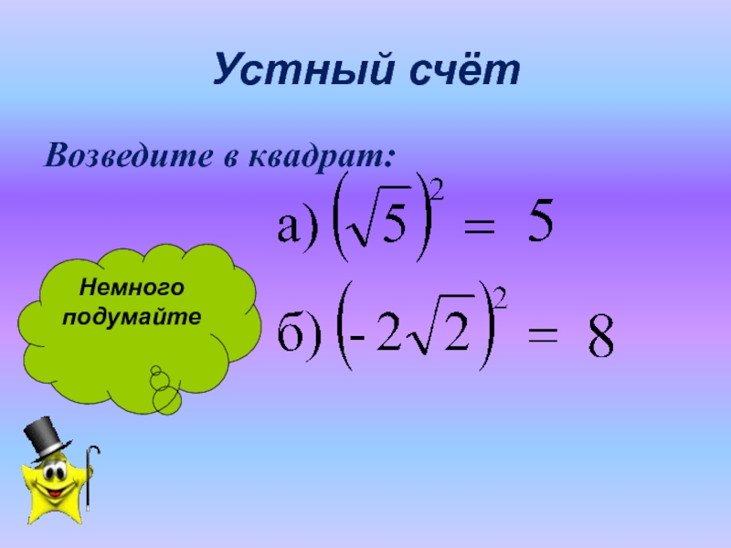 Устный счёт Внесите множитель под знак корня:Немного подумайте