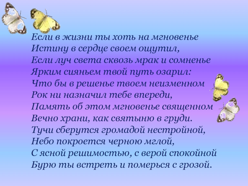 Если в жизни ты хоть на мгновеньеИстину в сердце своем ощутил,Если луч света сквозь мрак и сомненьеЯрким