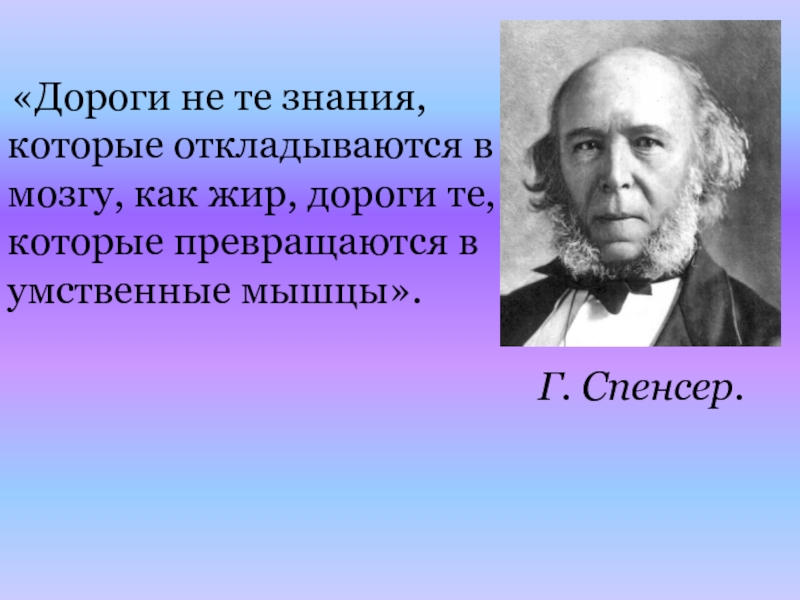 «Дороги не те знания, которые откладываются в мозгу, как жир, дороги те, которые превращаются вумственные мышцы».