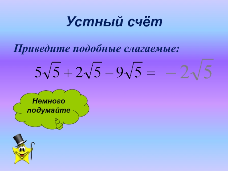 Устный счётПриведите подобные слагаемые:Немного подумайте