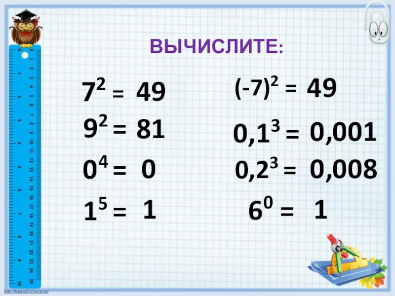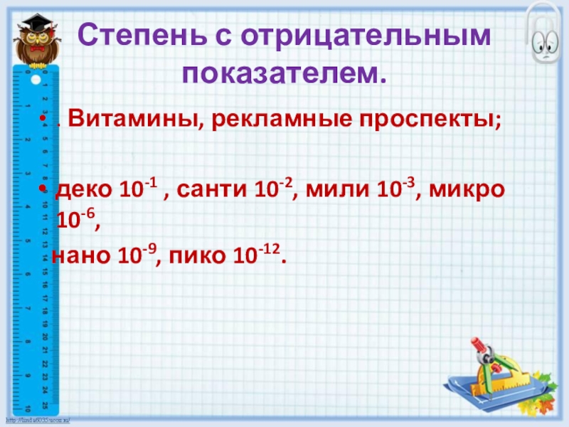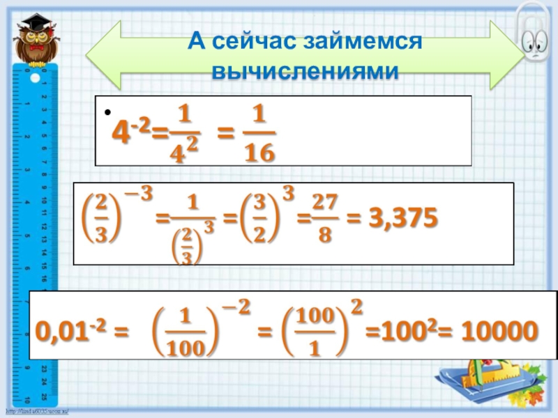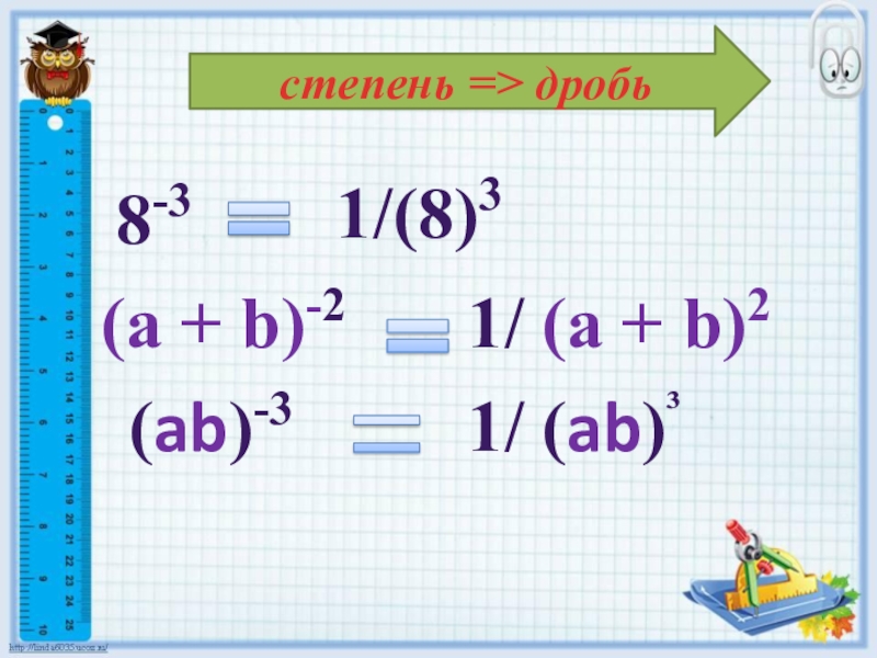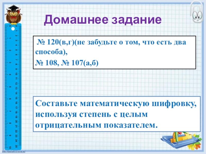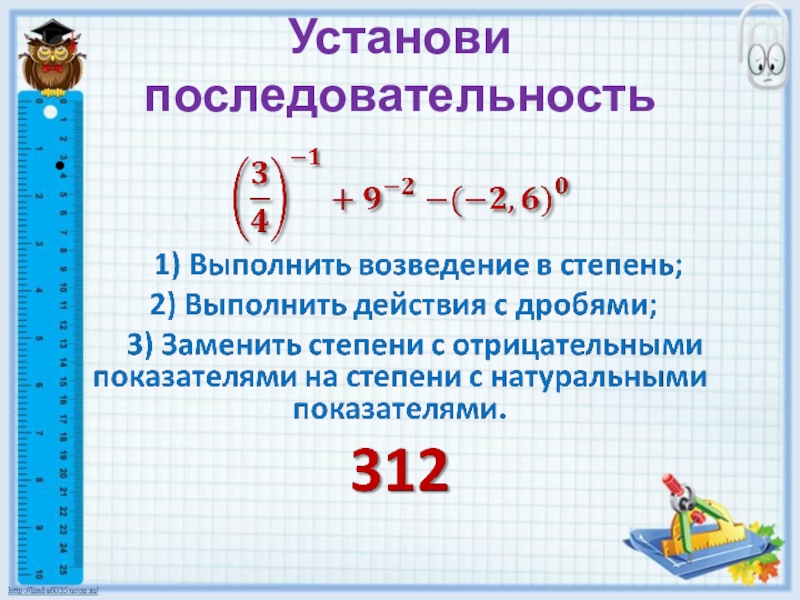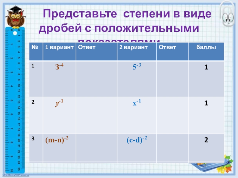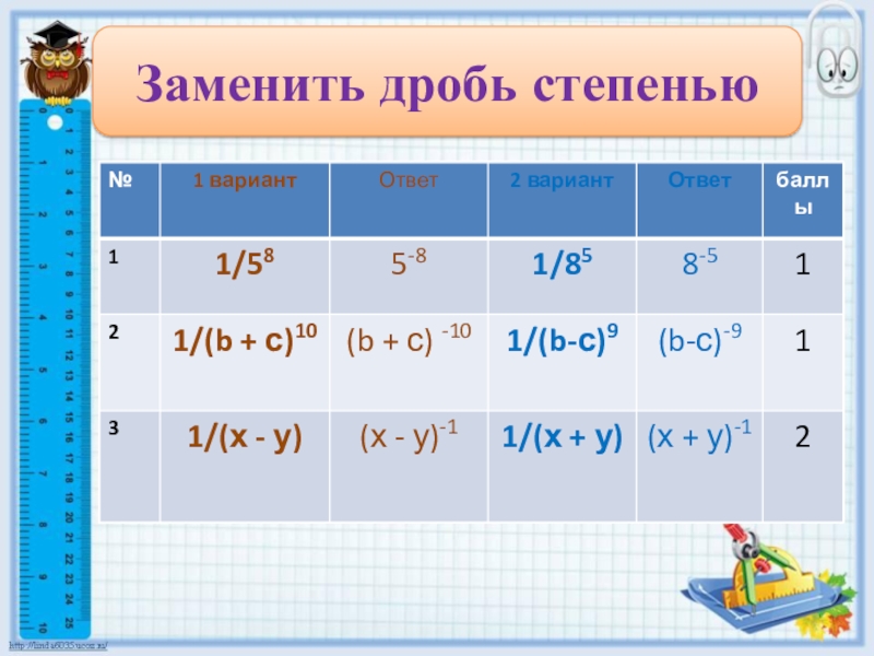 Составьте математическую шифровку, используя степень с целым отрицательным показателем.