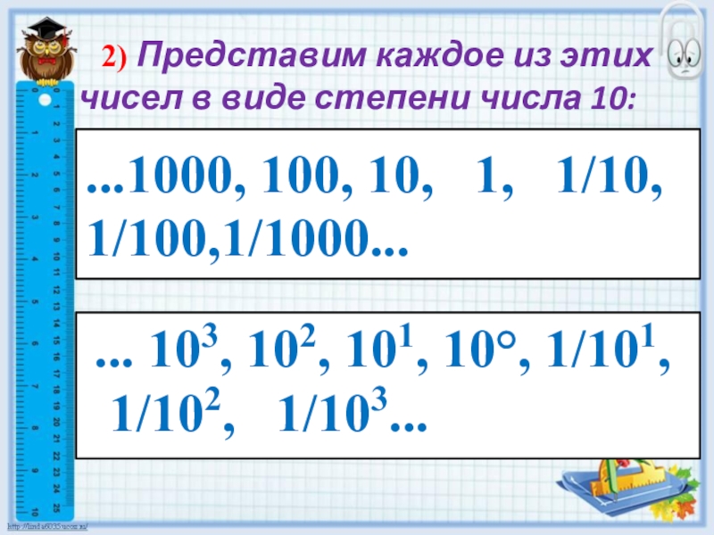 ... 103, 102, 101, 10°, 1/101, 1/102, 1/103...