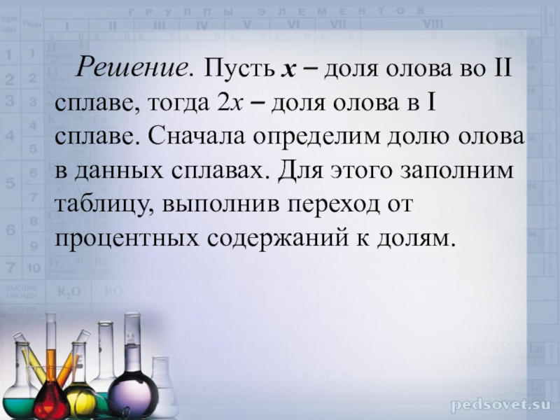 Слайд 44 Решение. Пусть x – доля олова во II