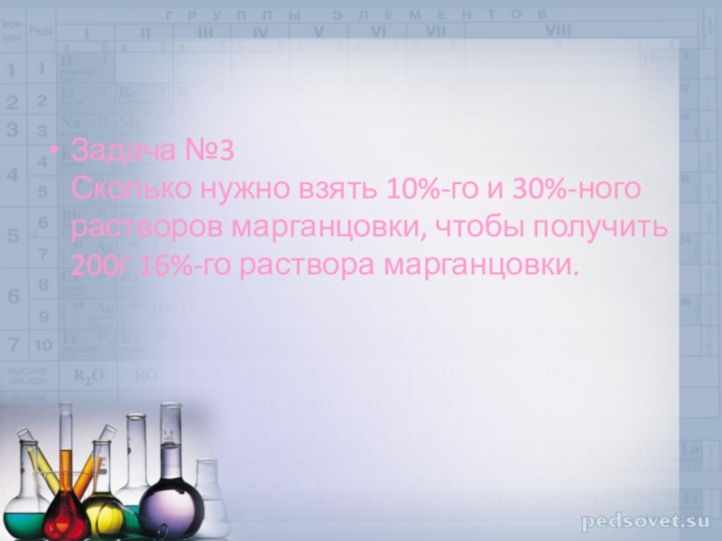 записываются процентные содержания основного вещества в имеющихся растворах.