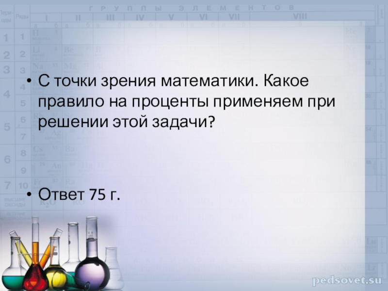 Слайд 12С точки зрения математики. Какое правило на проценты применяем при решении