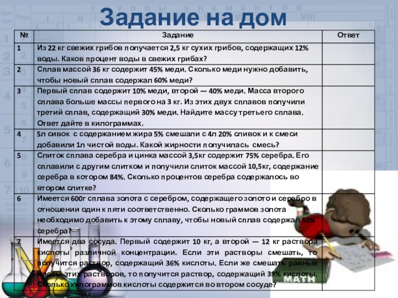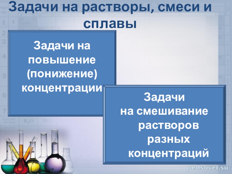 Слайд 15Задачи на растворы, смеси и сплавы