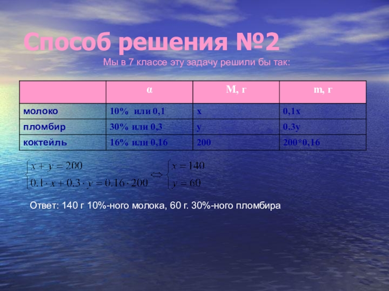 Ответ: 140 г 10%-ного молока, 60г 30%-ного пломбира