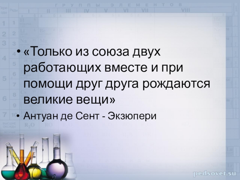 Слайд 3«Только из союза двух работающих вместе и при помощи друг друга