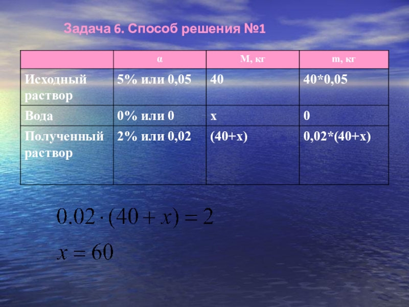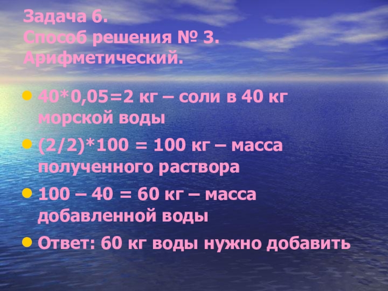 Задача6. Морская вода содержит 5% солей.
