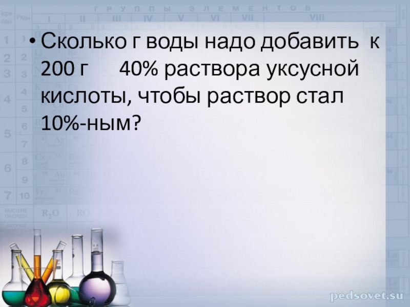 Слайд 13Сколько г воды надо добавить к 200 г 40%