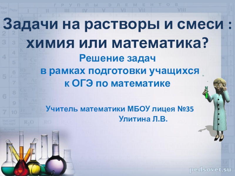 Слайд 1Задачи на растворы и смеси : химия или математика?