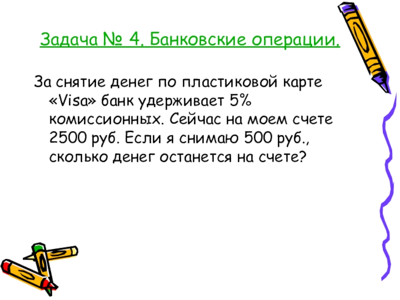 Задача № 4. Банковские операции.