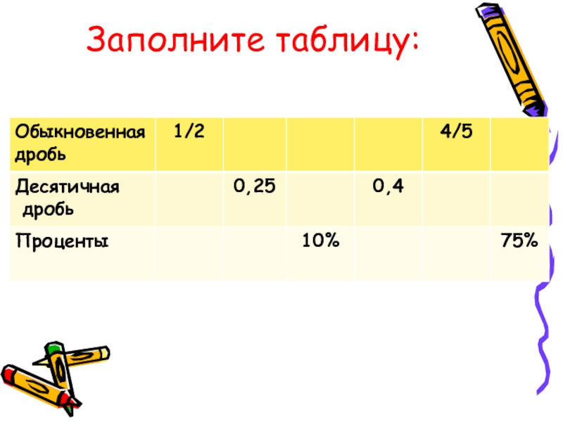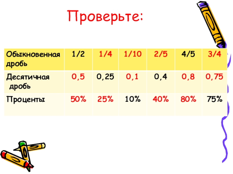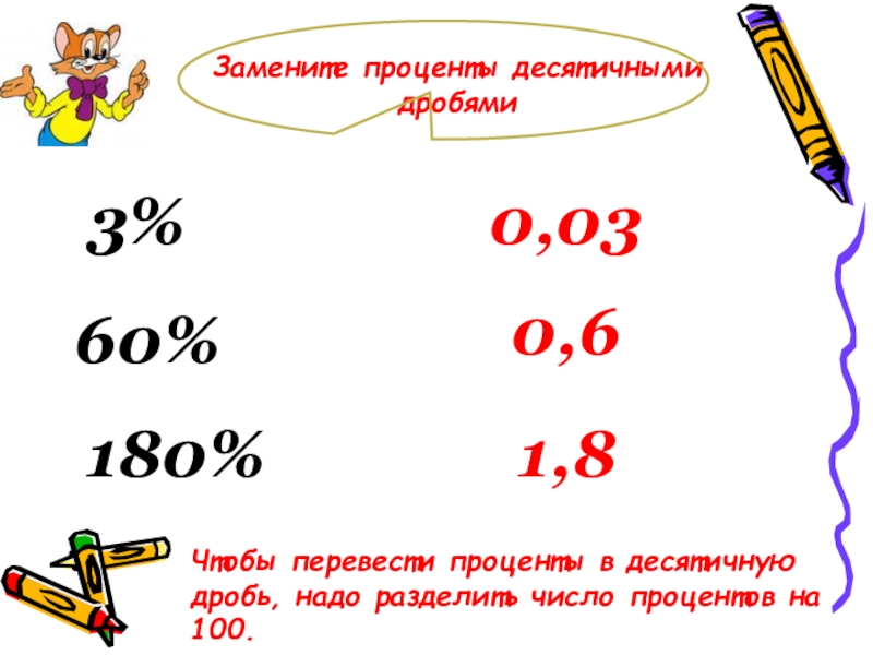 Слайд 5Замените проценты десятичными дробями