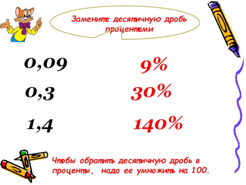 Слайд 6Замените десятичную дробь процентами