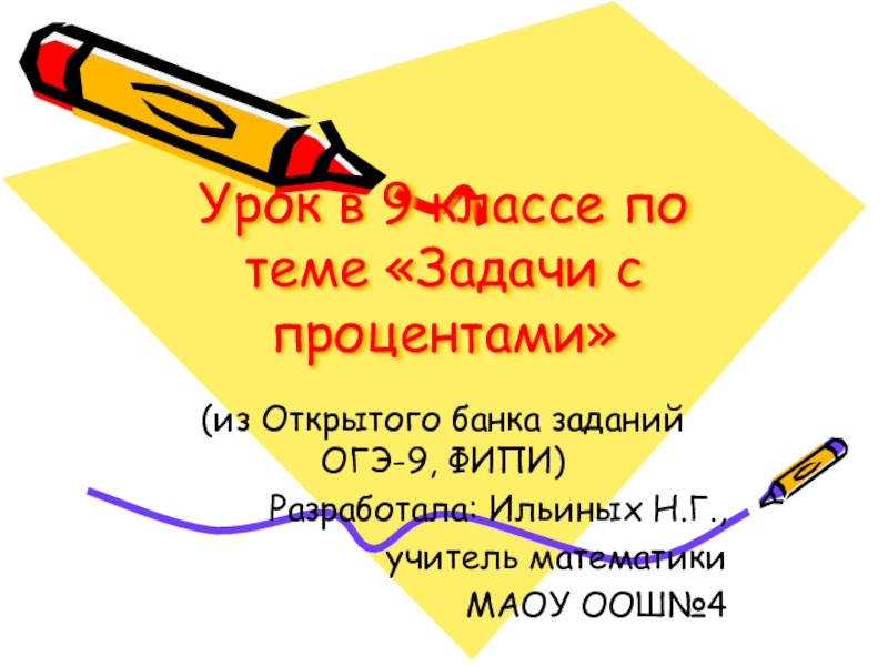 Слайд 1Урок в 9 классе по теме «Задачи с процентами»