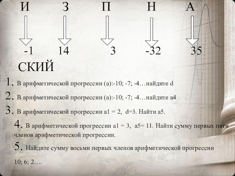 В арифметической прогрессии (а):-10; -7; -4…найдите d