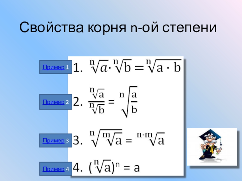 Свойства корня n-ой степениПример 2Пример 1Пример 3Пример 4