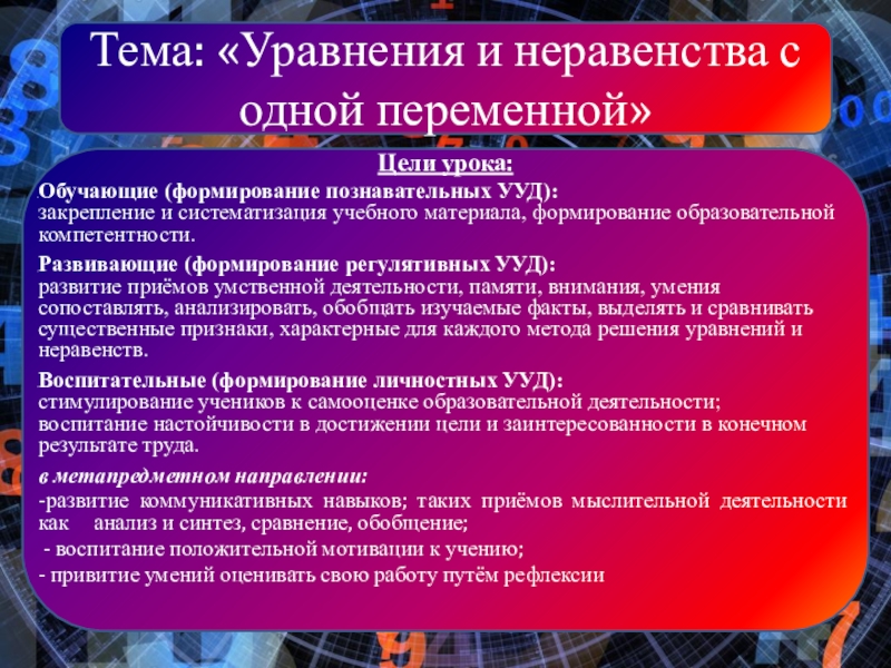- вводится определение неравенства; теоретически обосновываются свойства неравенств;