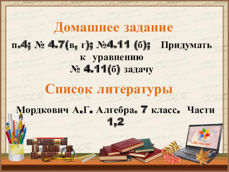 п.4; № 4.7(в, г); №4.11 (б); Придумать