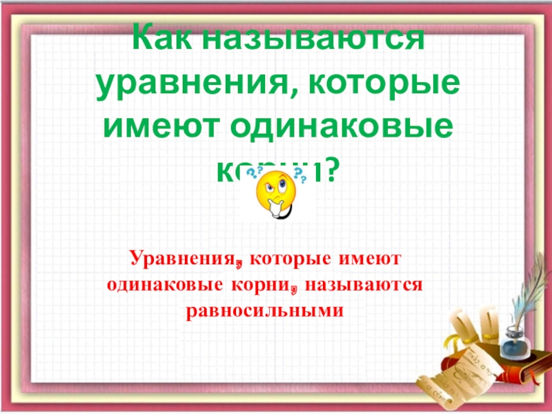 Слайд 28Как называются уравнения, которые имеют одинаковые корни?