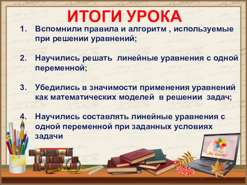 Убедились в значимости применения уравнений как математических моделей в решении задач;