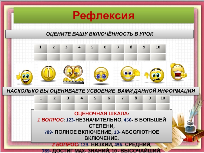 ОЦЕНИТЕ ВАШУ ВКЛЮЧЁННОСТЬ В УРОК