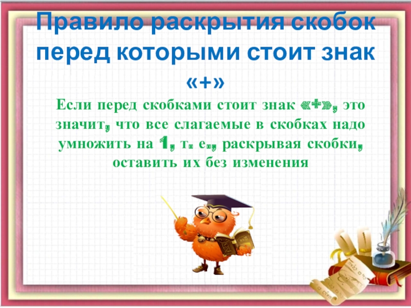 Слайд 21Правило раскрытия скобок перед которыми стоит знак «+»