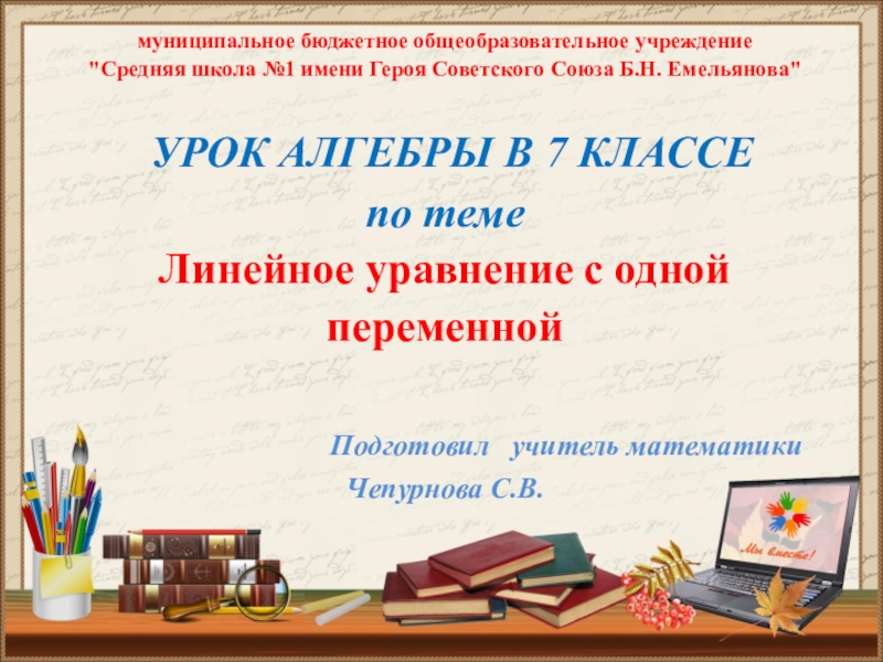 УРОК АЛГЕБРЫ В 7 КЛАССЕ