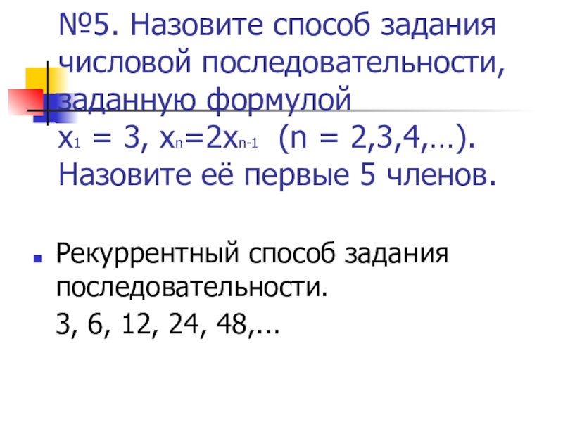 Рекуррентный способ задания последовательности. 3, 6, 12, 24, 48,...