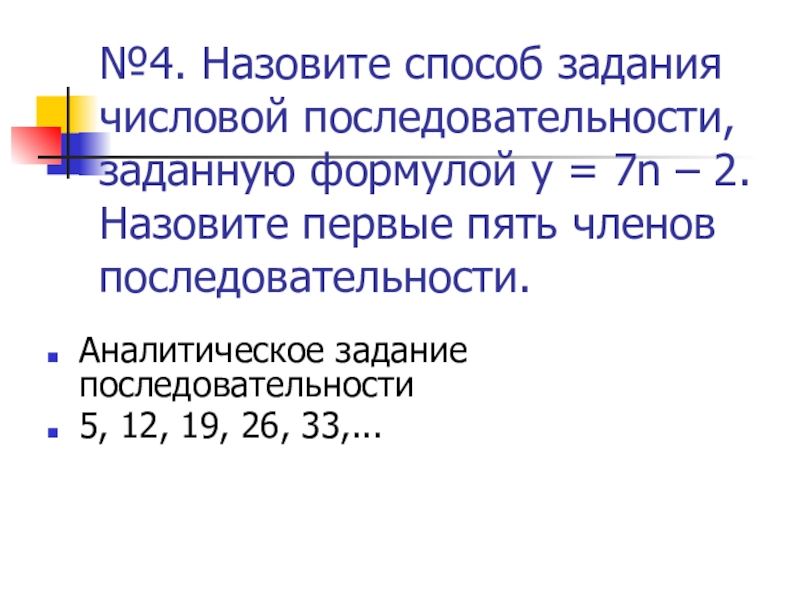 Аналитическое задание последовательности
