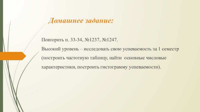 (построить частотную таблицу, найти основные числовые характеристики, построить гистограмму успеваемости).