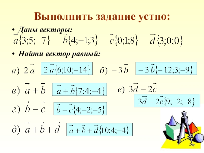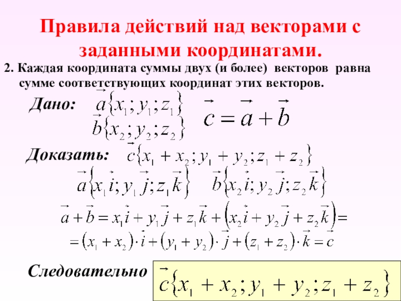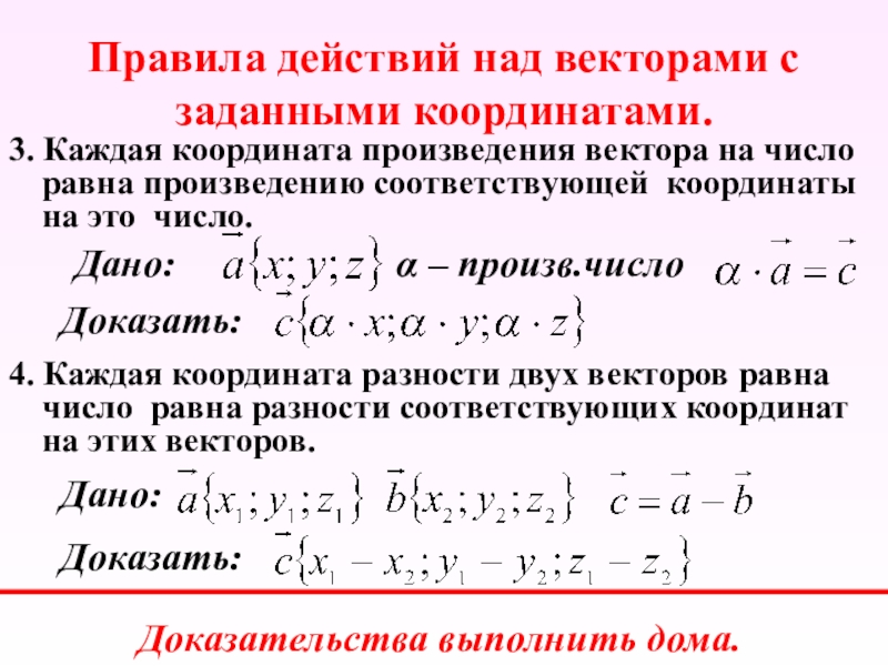 4. Каждая координата разности двух векторов равна число равна разности соответствующих координат на этих векторов.