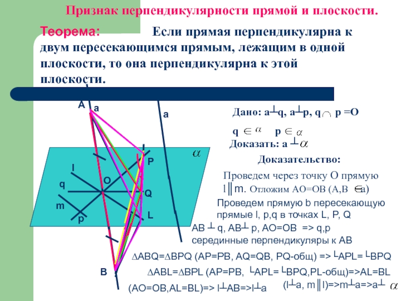 AB ┴ q, AB┴ p, AO=OB => q,p серединные перпендикуляры к АВ