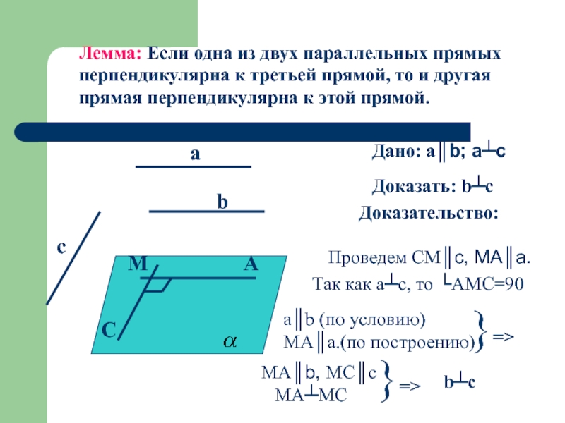 Тогда с1║ с, это невозможно, так как с1∩ с = М